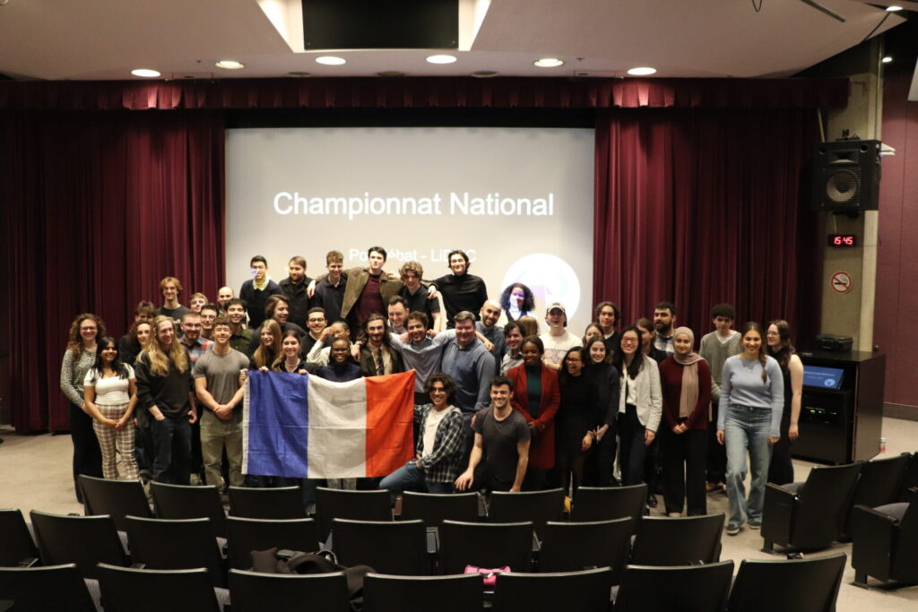 Participation à des débats selon le format parlementaire canadien. Les participants y développent leur éloquence, argumentation structurée et capacité à improviser dans des joutes oratoires organisées entre universités